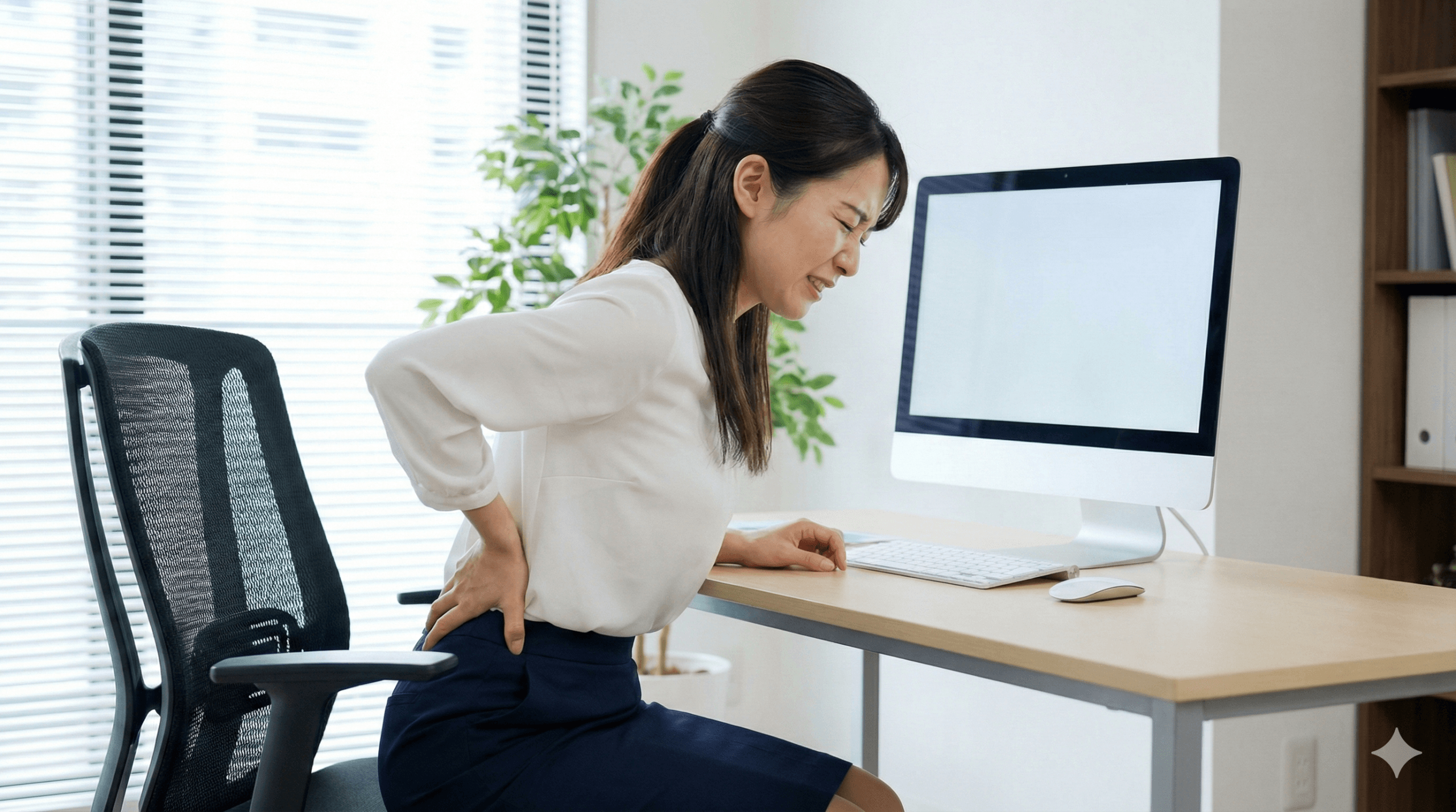座っていると右腰が固まってきて、立ち上がりでズキッとするタイプは、座り姿勢の偏りが関係しやすいです。